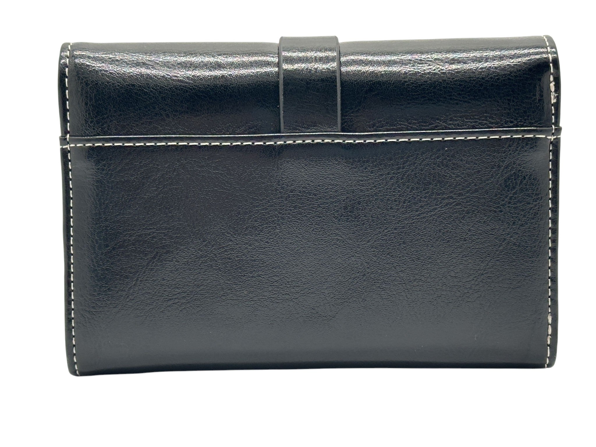 Billetera plegable pequeña. Práctica, compacta y funcional, con acabado brillante. Ideal para uso diario.