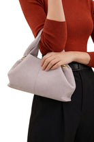 Bolso en cuero vegano de alta calidad importado. Silueta curvada y asas anchas. Diseño minimalista con textura lisa. Liviano y flexible.