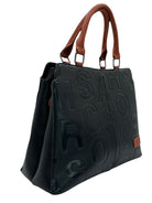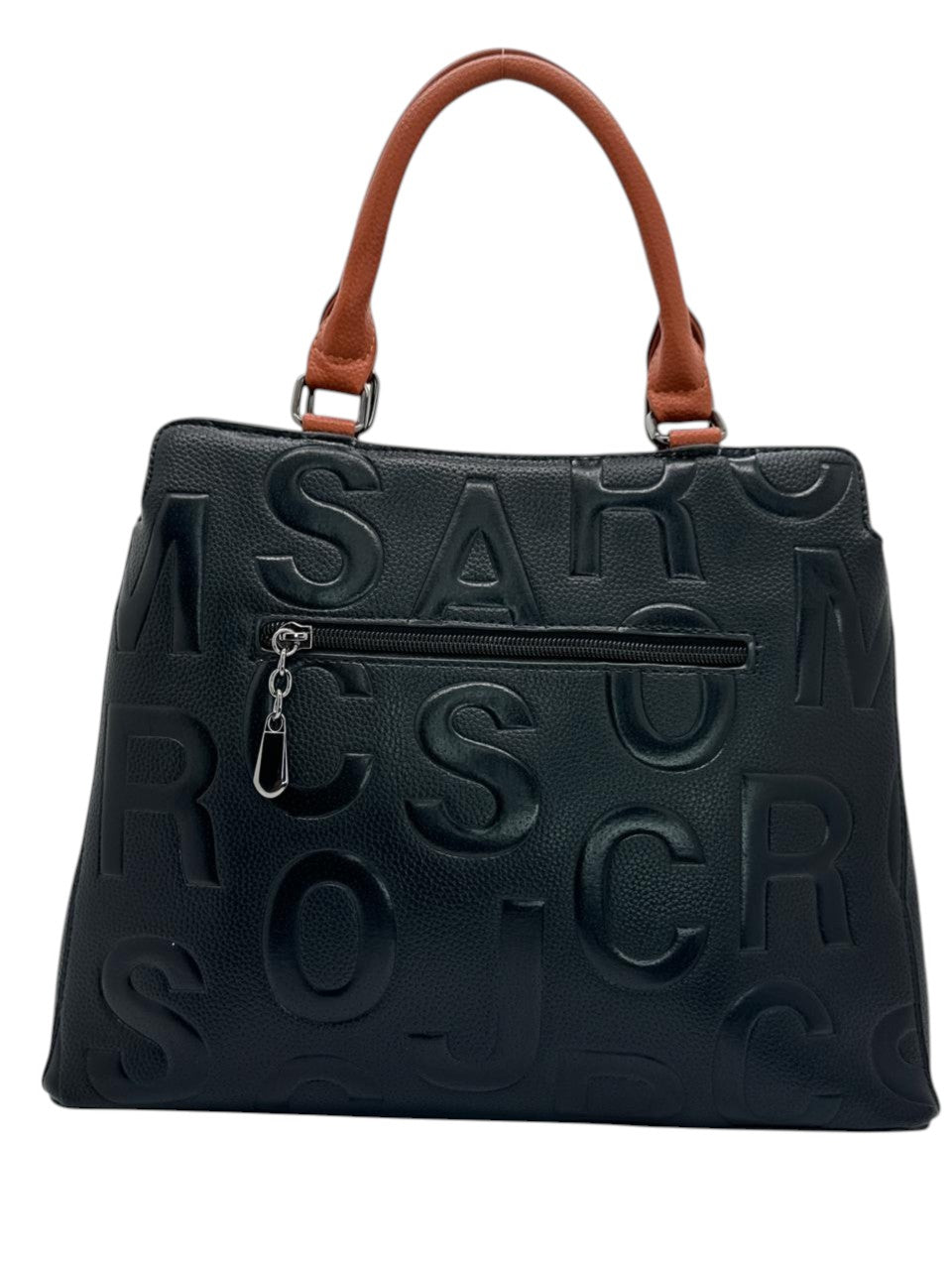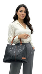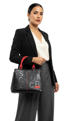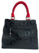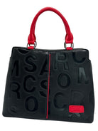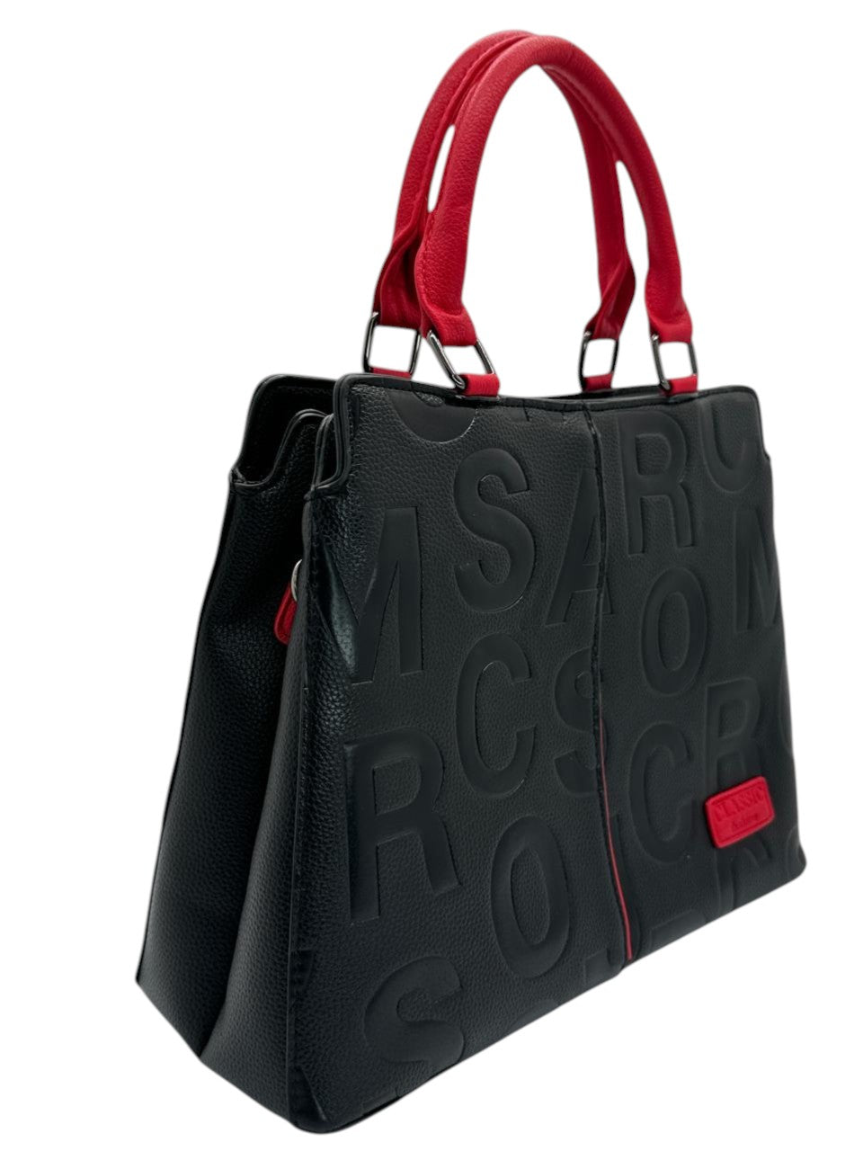 Bolso en cuero vegano de alta calidad importado, con diseño en relieve y contraste en tonos rojos y marron. Asas firmes y detalles metálicos que aportan carácter y modernidad. Amplio, elegante y perfecto para un look sofisticado con actitud.