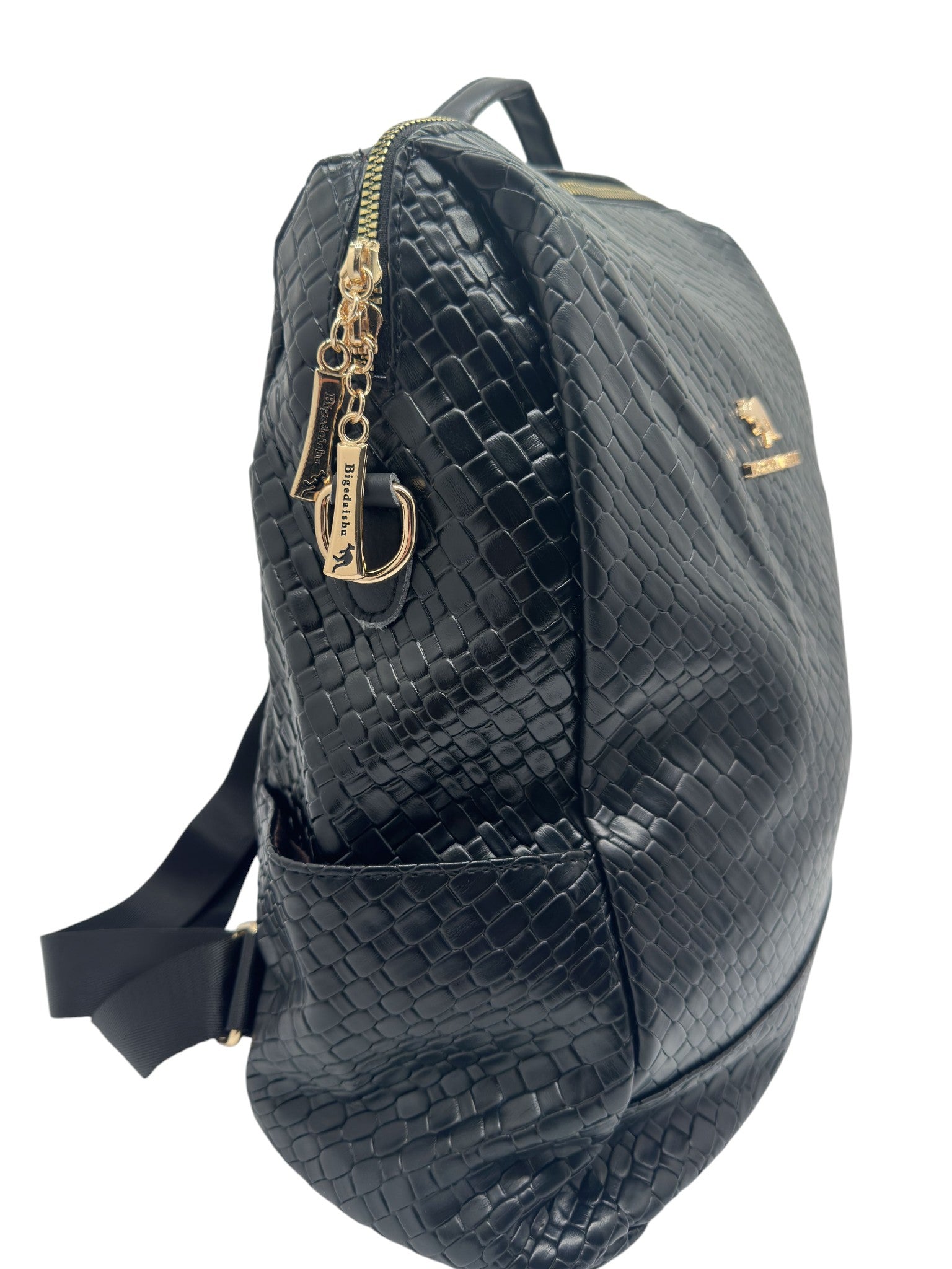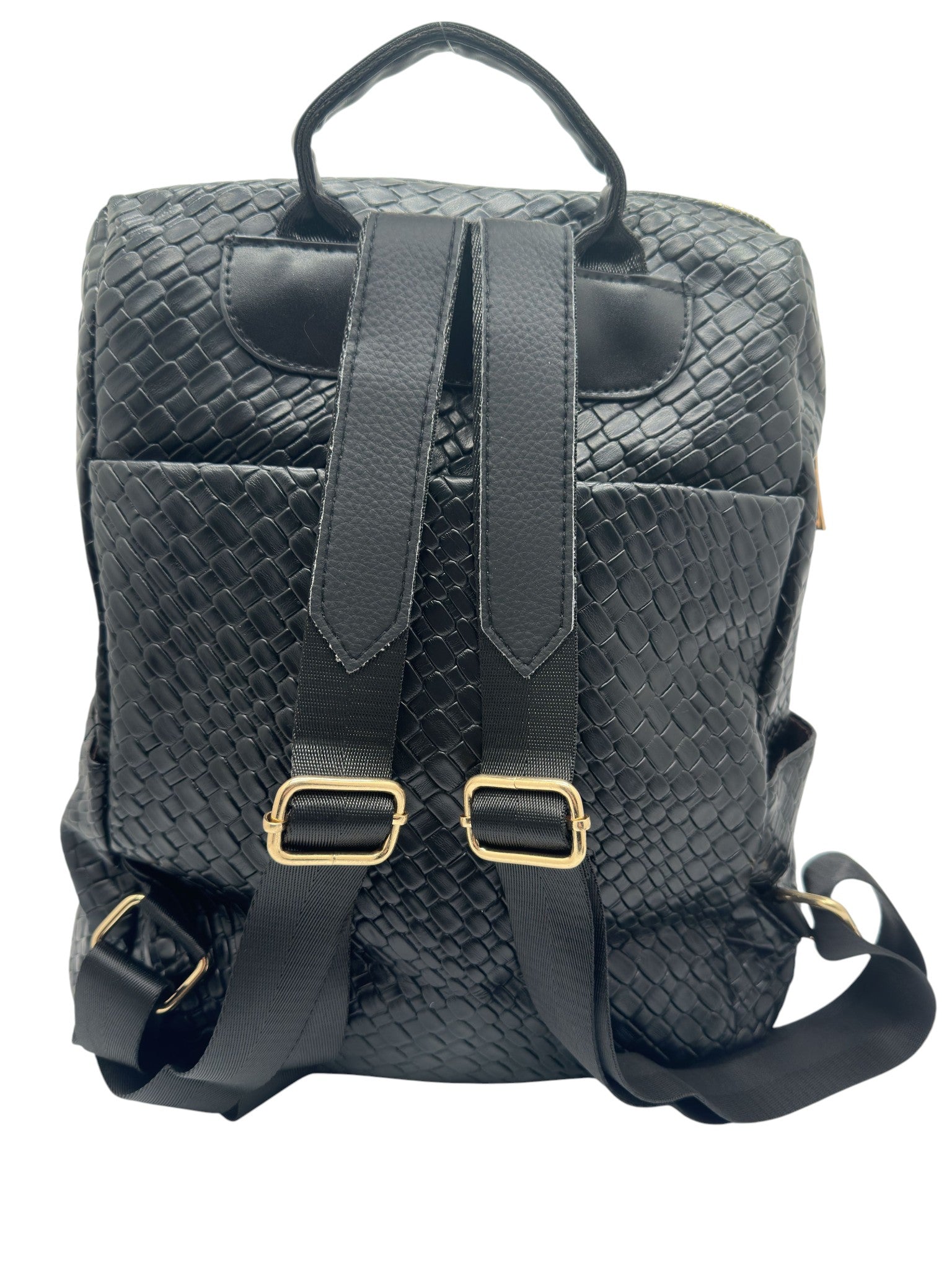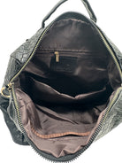 Bolso tipo mochila convertible en cuero vegano de alta calidad importado. Diseño sobrio y elegante con correas ajustables. Cierre superior y bolsillos funcionales.