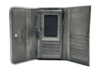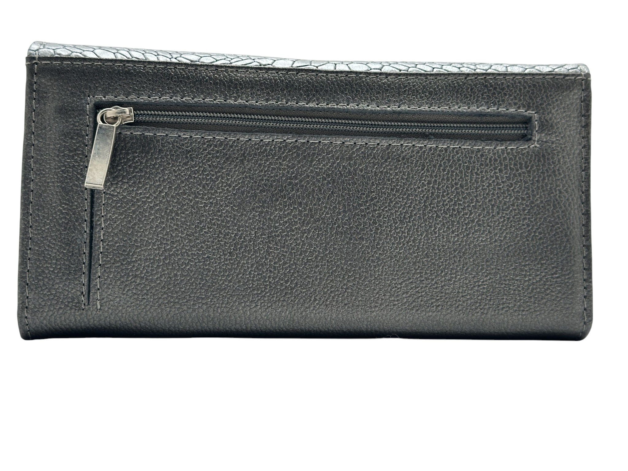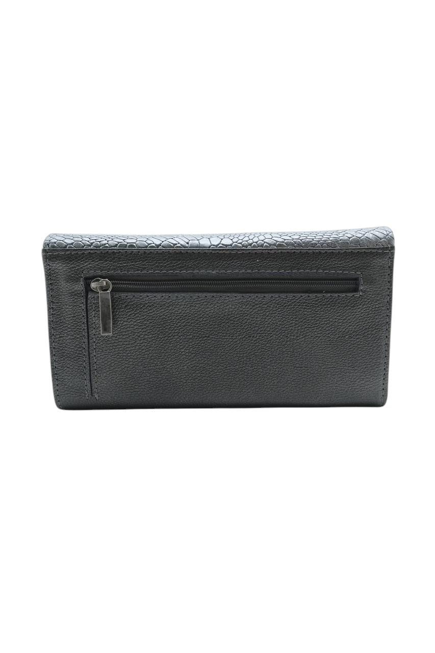 Billetera grande en cuero genuino, trabajada a mano, con acabado texturizado tipo reptil que aportan carácter y sofisticación. Su diseño combina arte, feminidad y funcionalidad. Ideal para quienes buscan un accesorio exclusivo, atemporal y amplio.