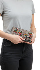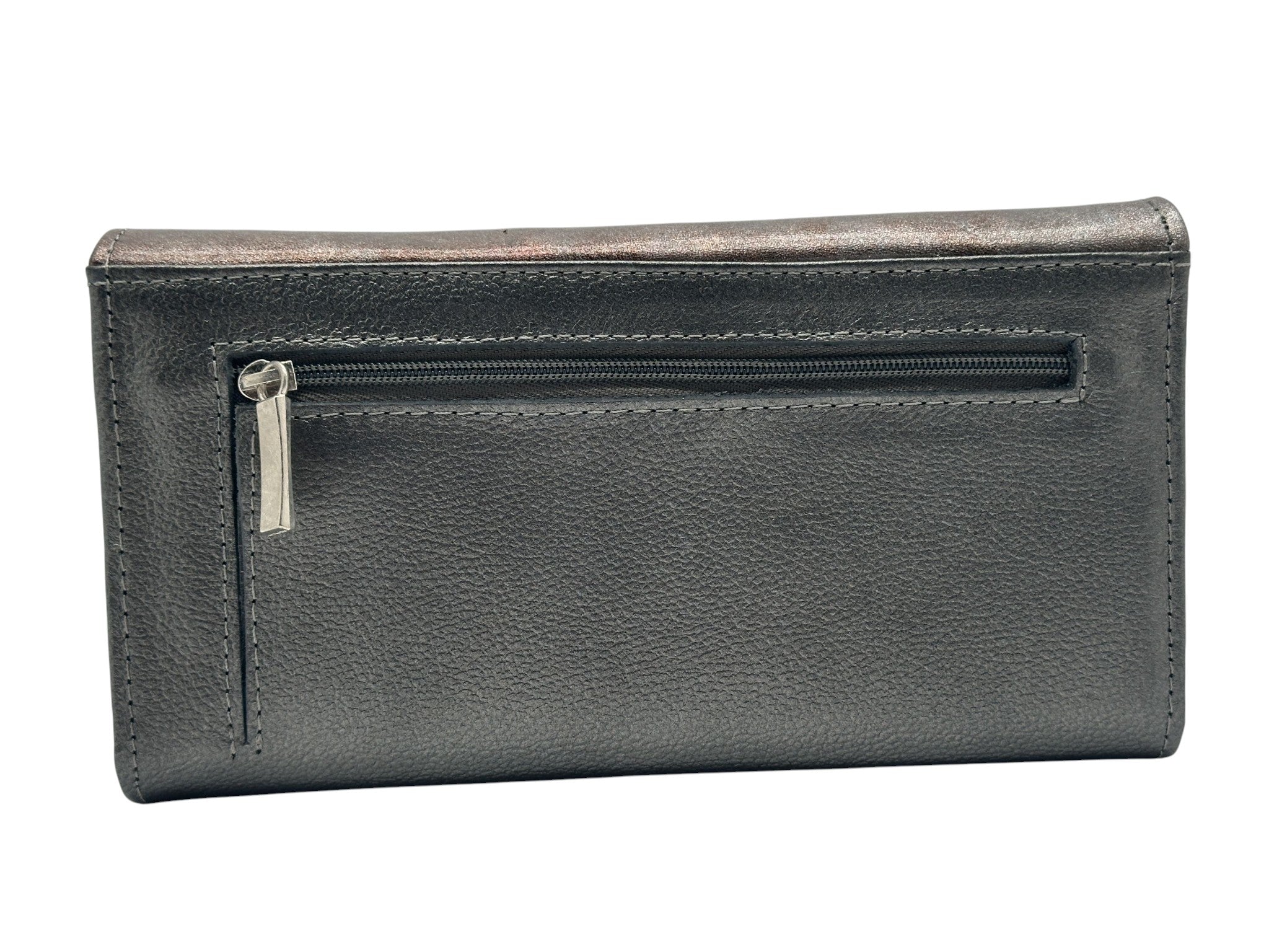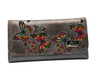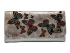Billetera grande en cuero genuino, pintada y trabajada a mano, con delicados relieves de mariposas que la hacen única. Su diseño combina arte, feminidad y funcionalidad. Ideal para quienes buscan un accesorio exclusivo, atemporal y amplio.