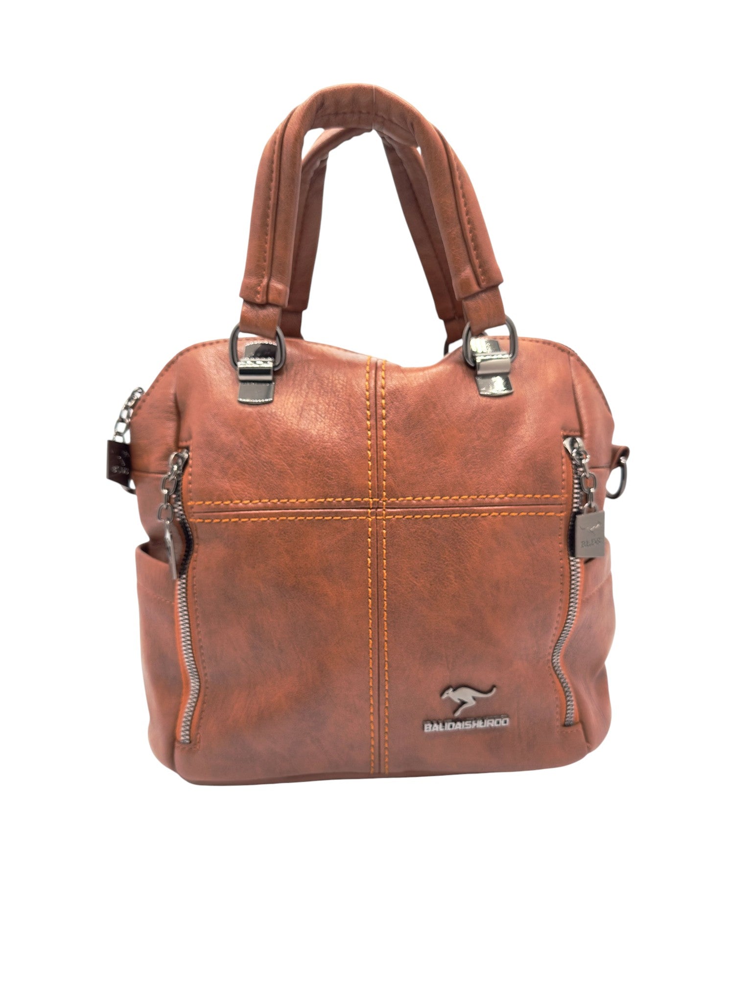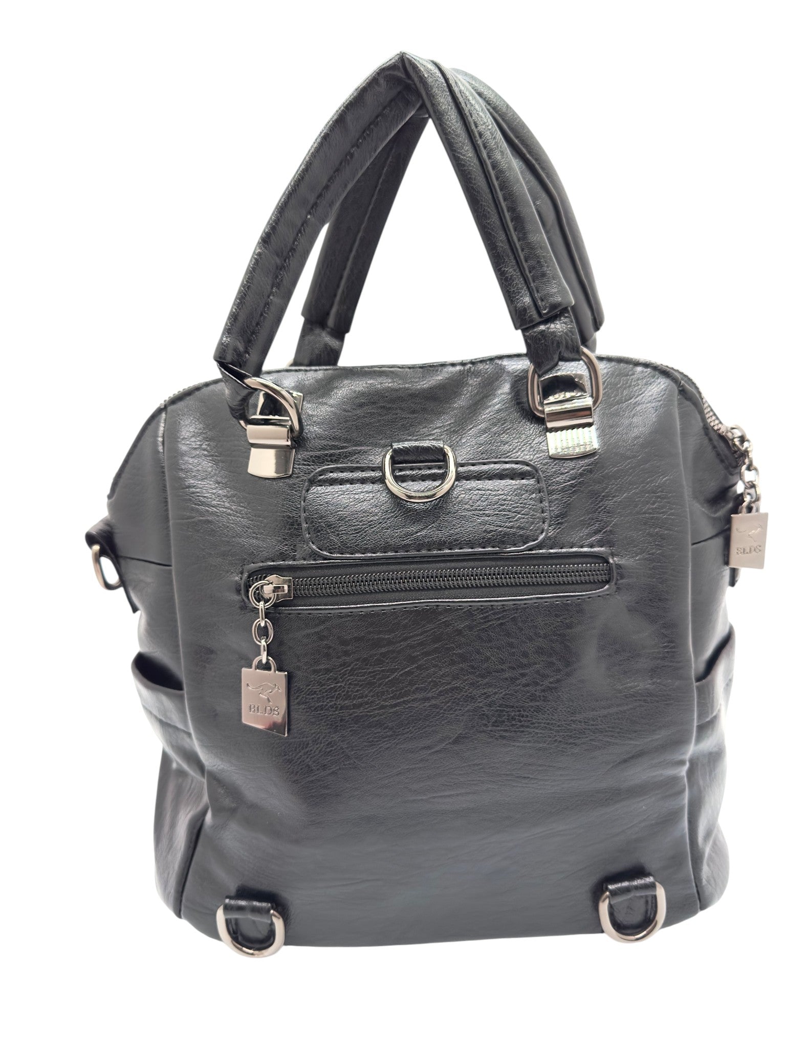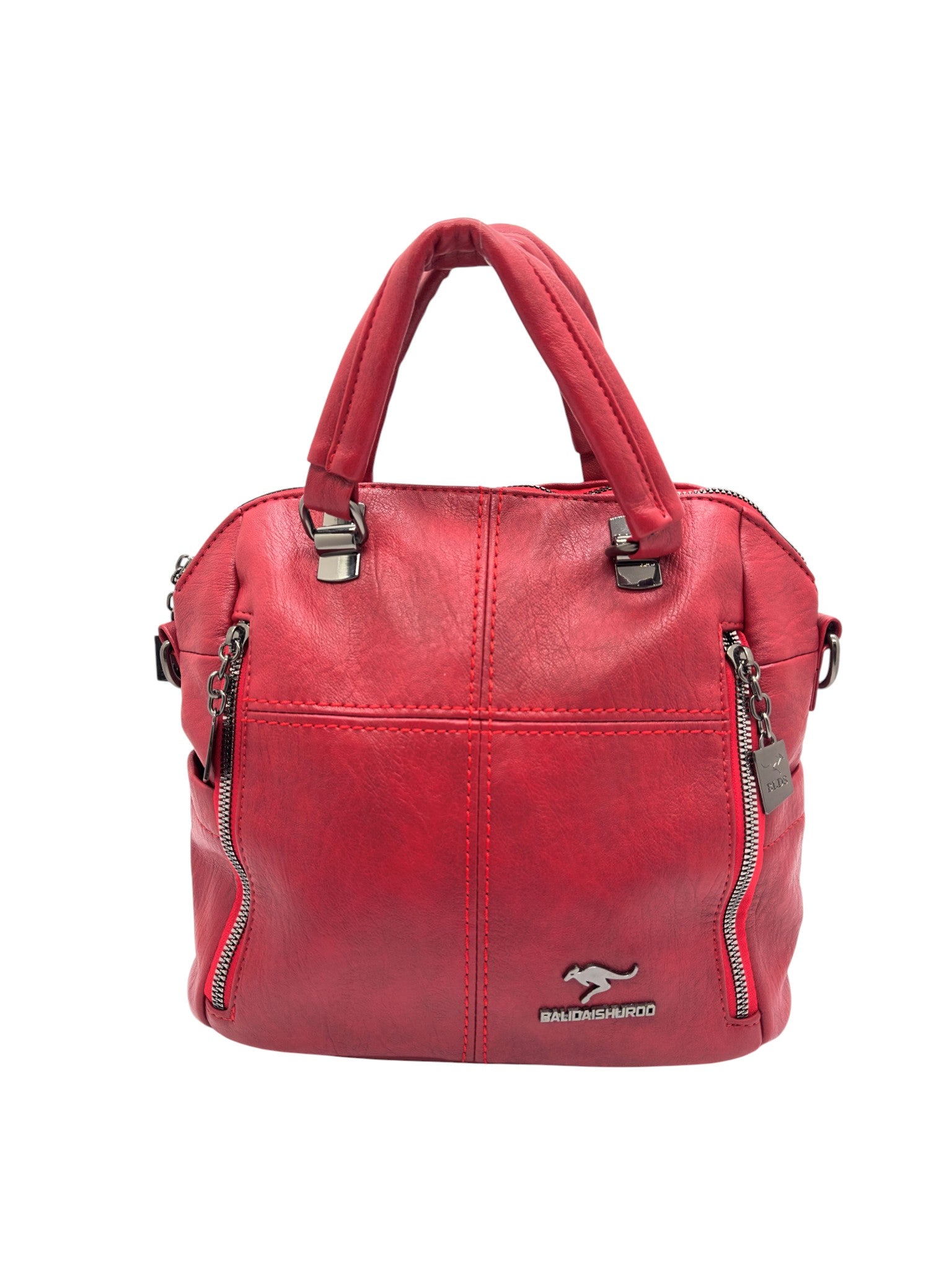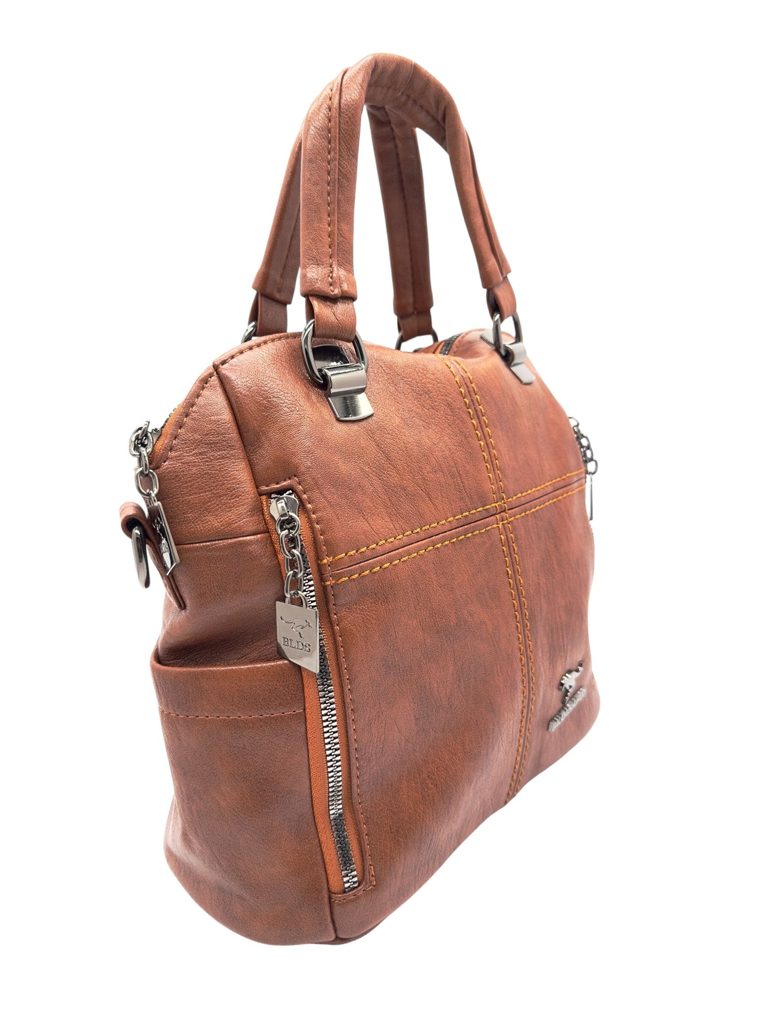 Bolso en cuero vegano de alta calidad importado. Estructura firme, doble asa y correa desmontable. Diseño moderno con herrajes plateados.