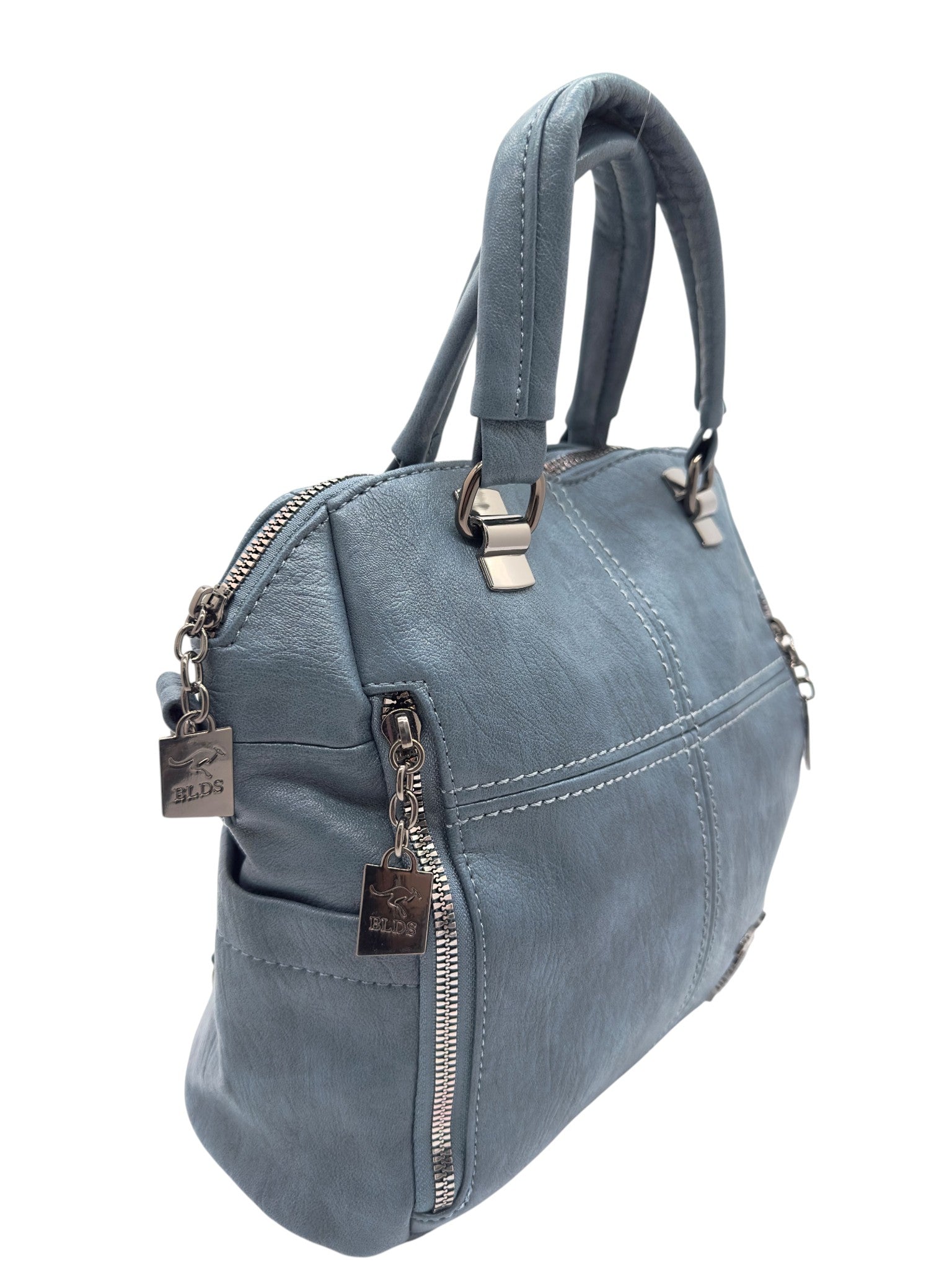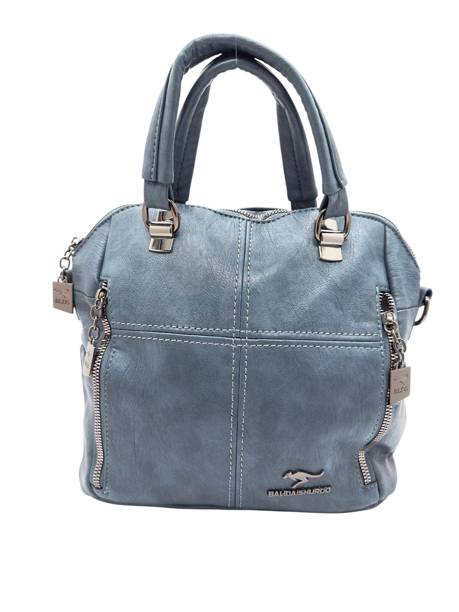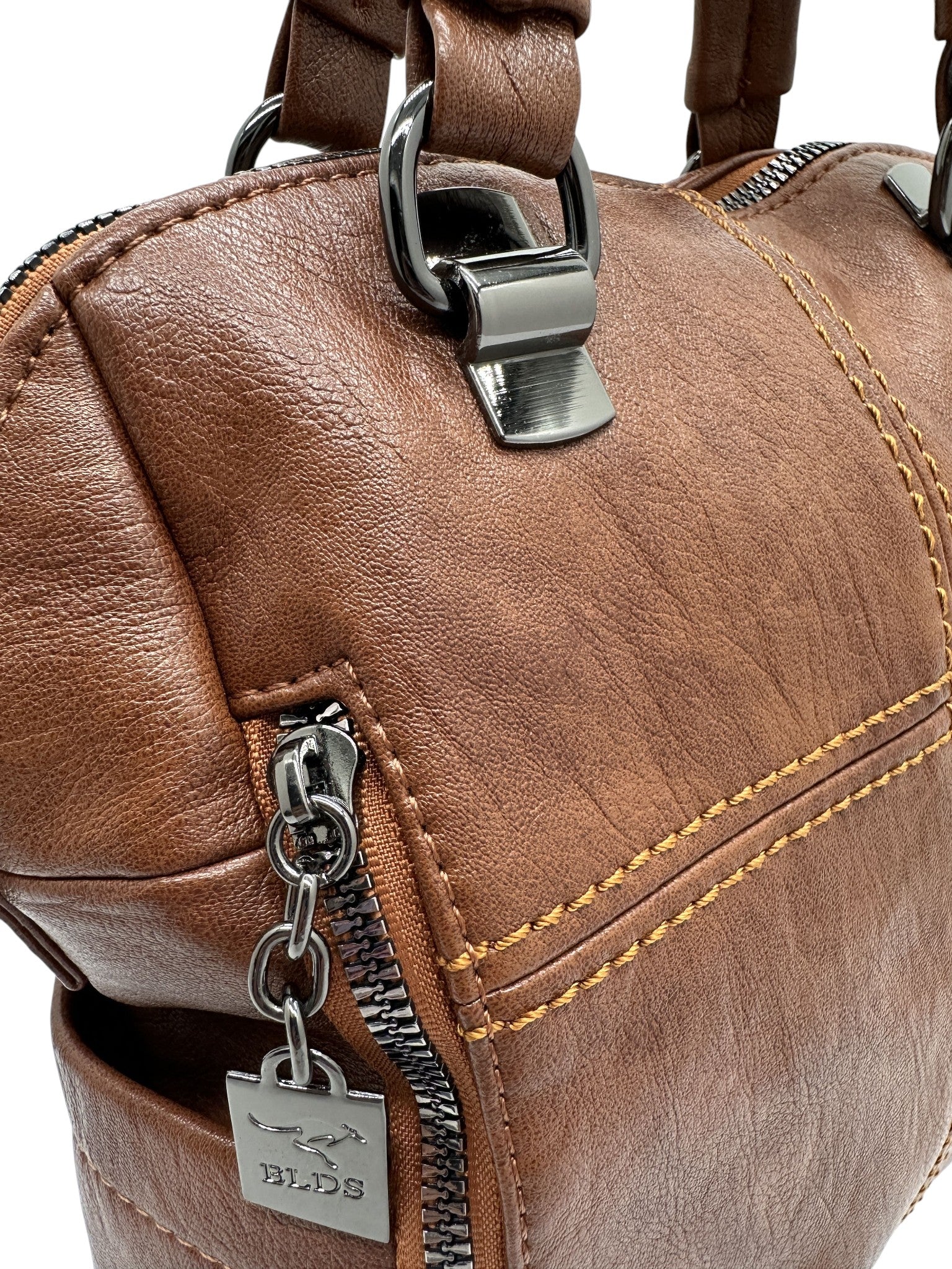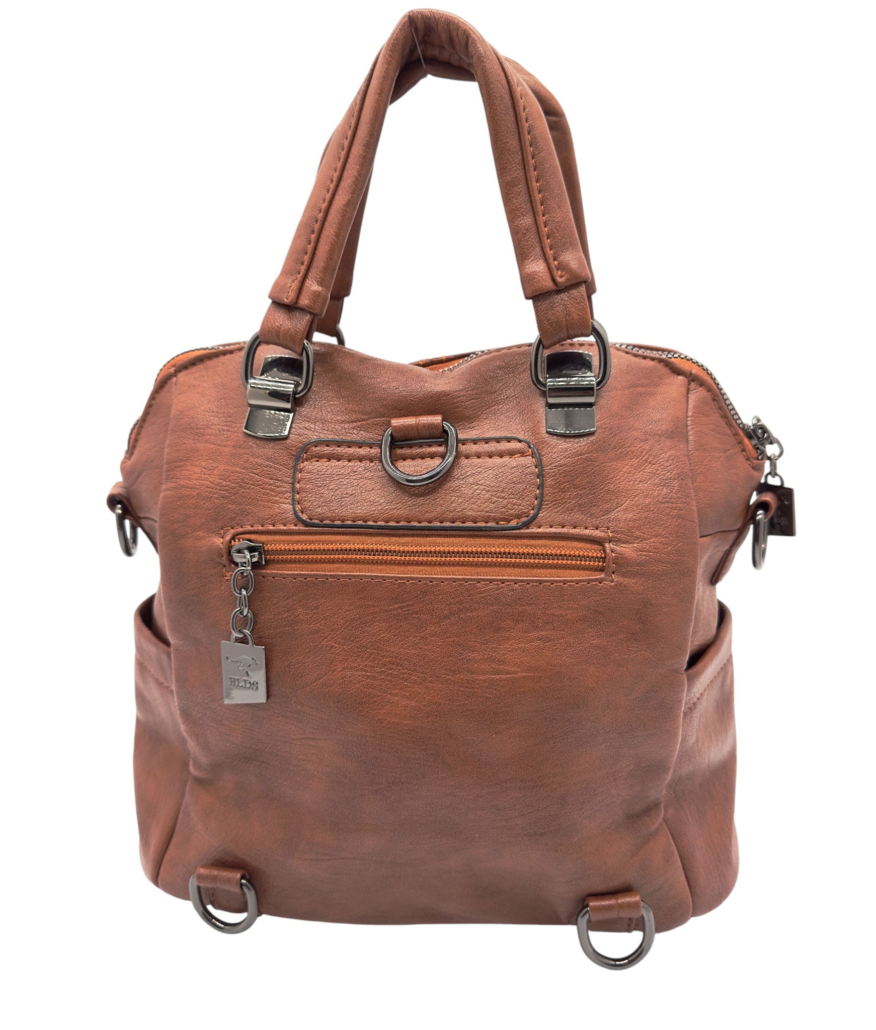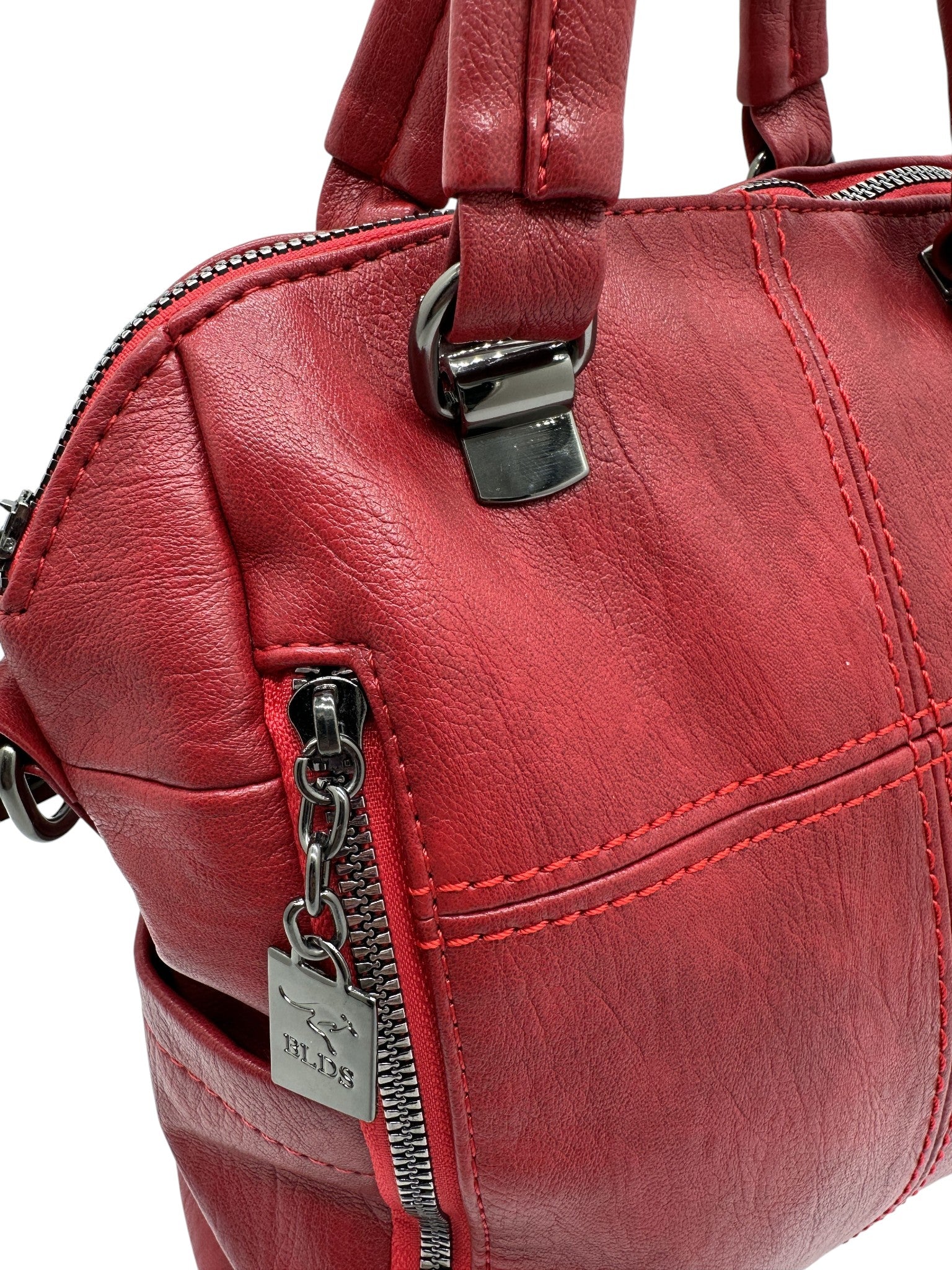 Bolso en cuero vegano de alta calidad importado. Estructura firme, doble asa y correa desmontable. Diseño moderno con herrajes plateados.