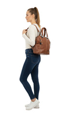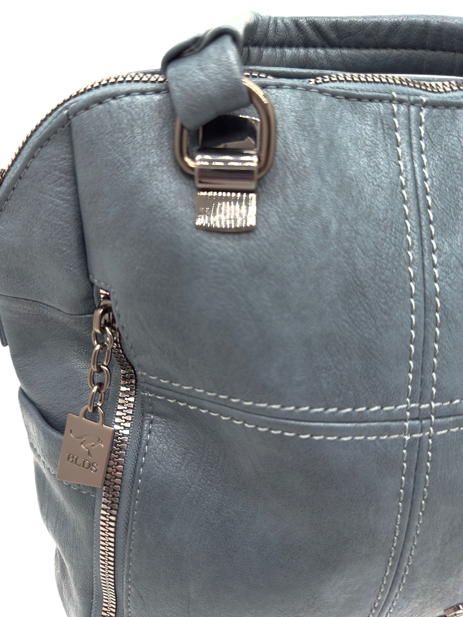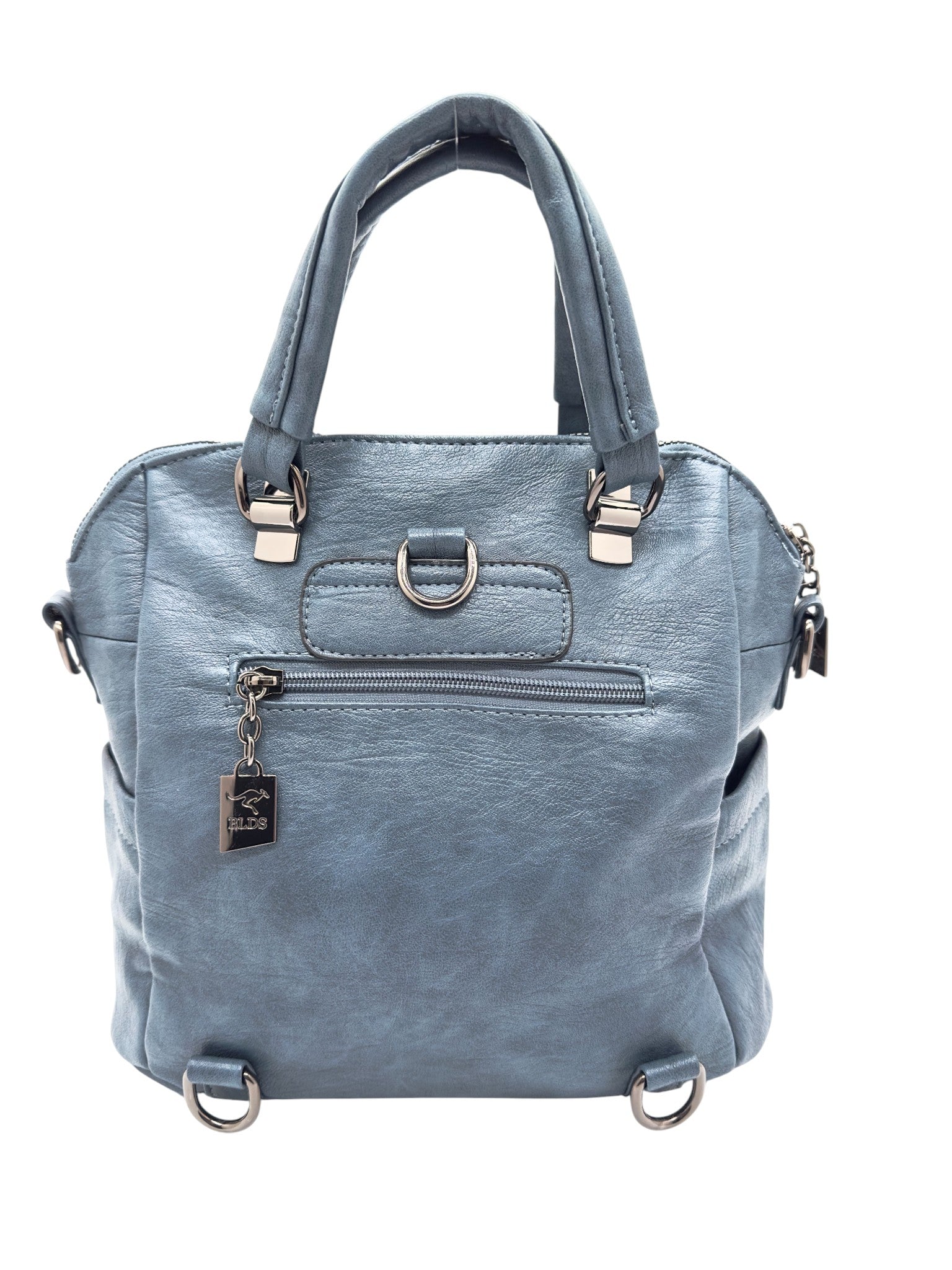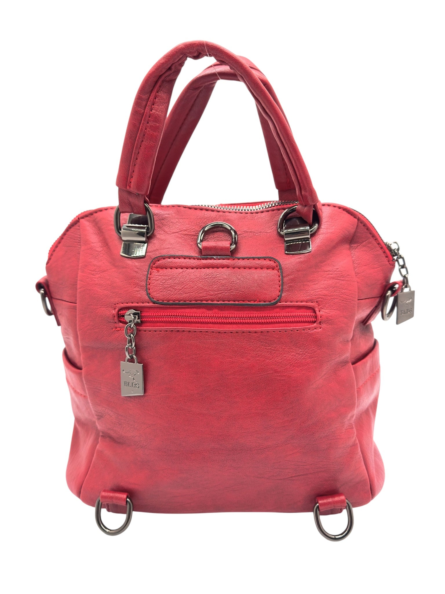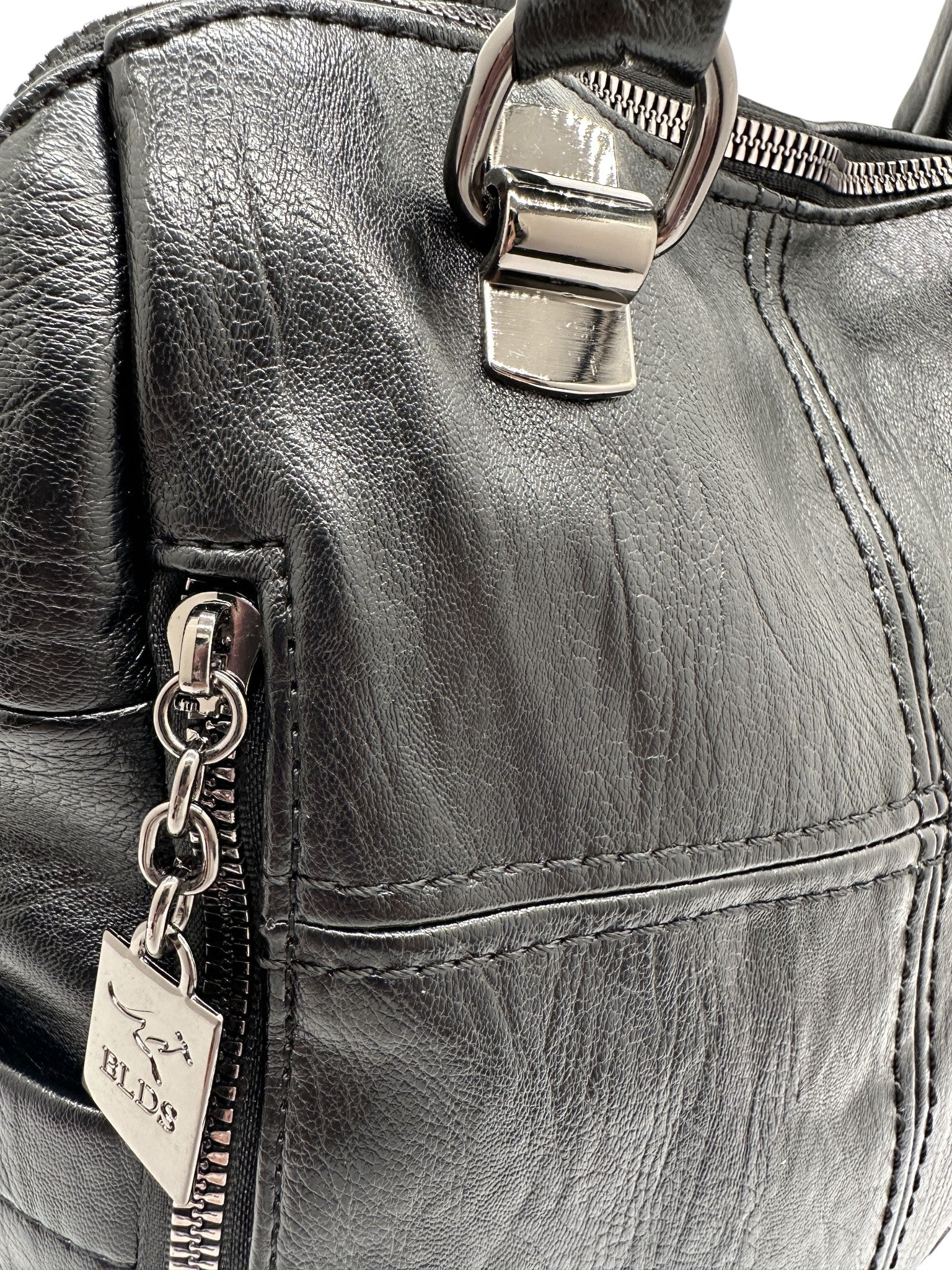 Bolso en cuero vegano de alta calidad importado. Estructura firme, doble asa y correa desmontable. Diseño moderno con herrajes plateados.