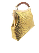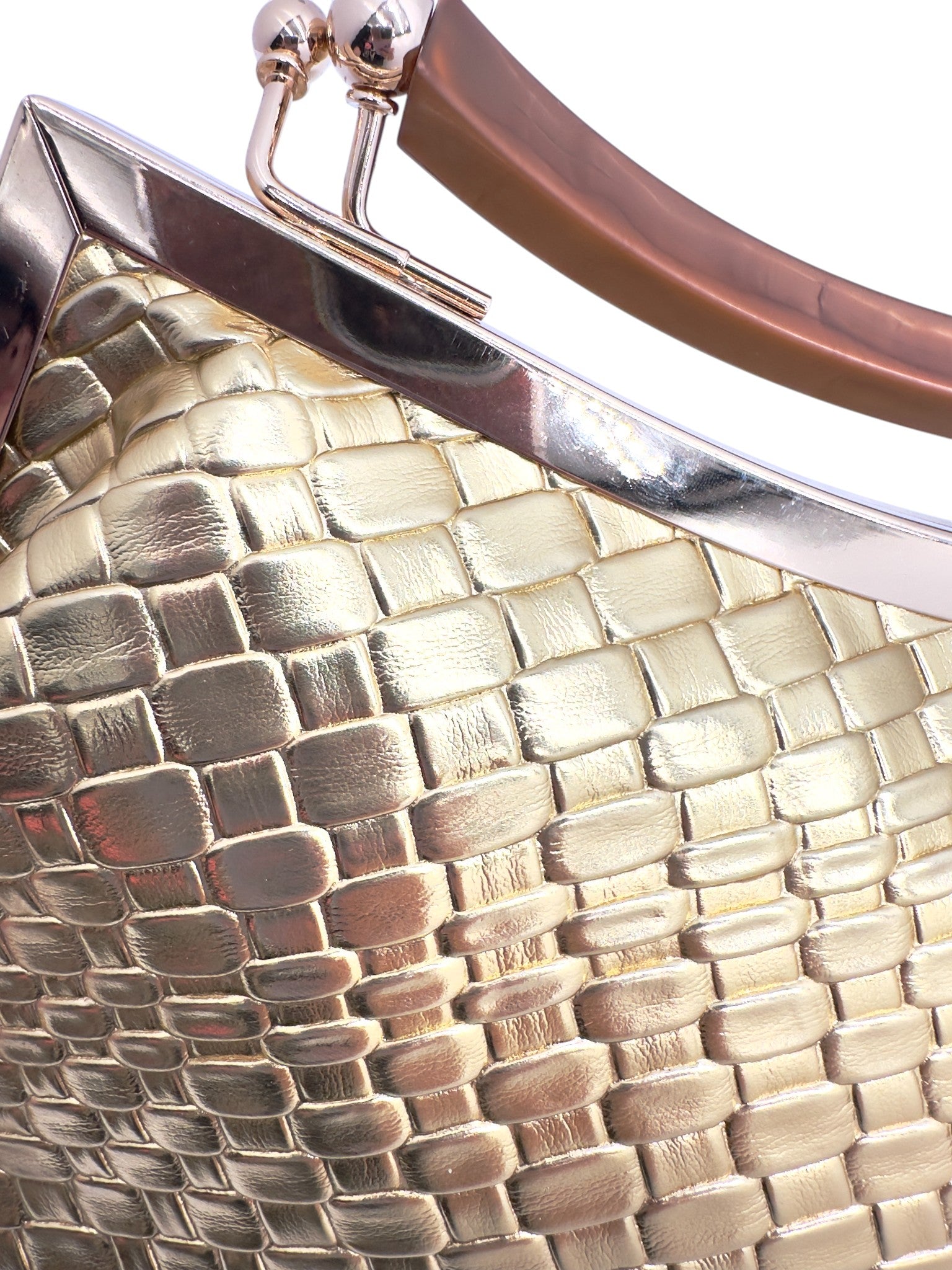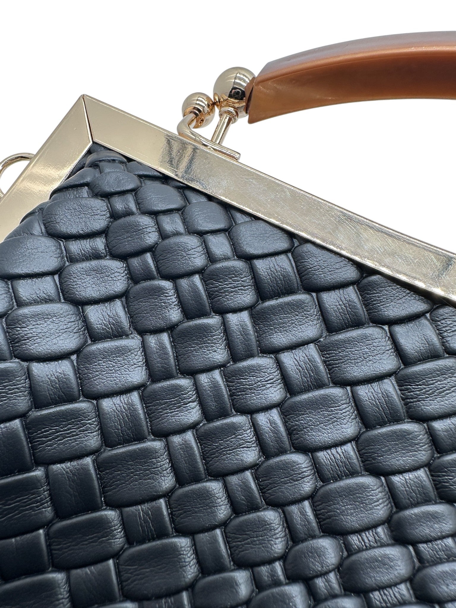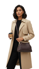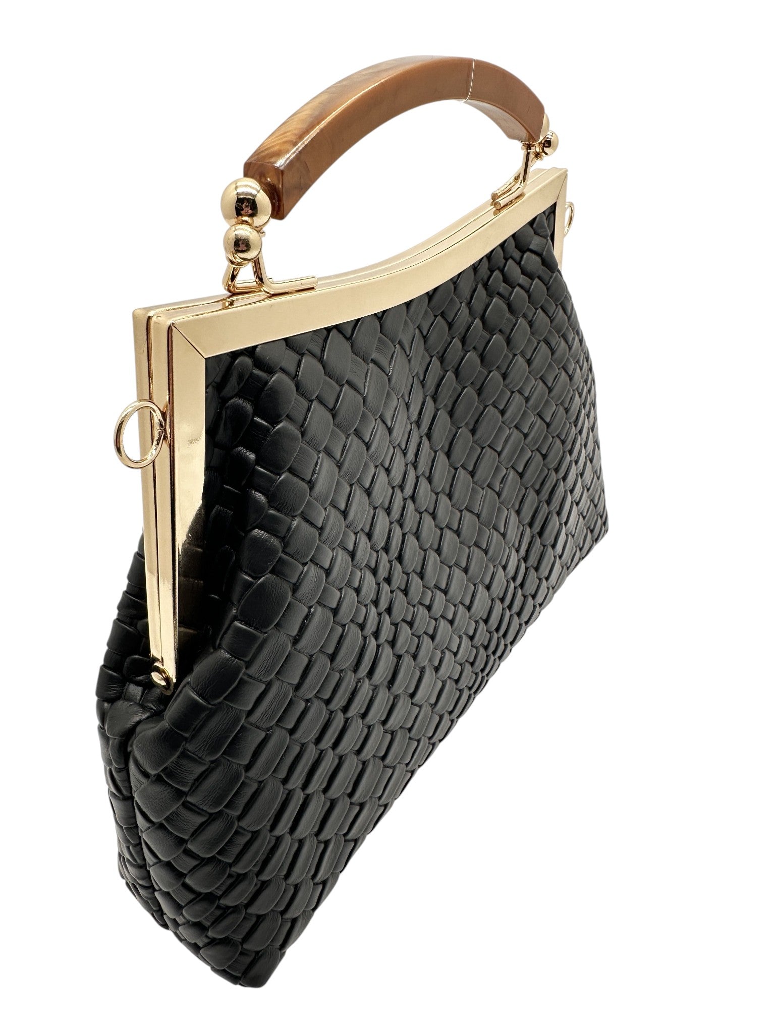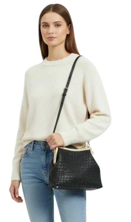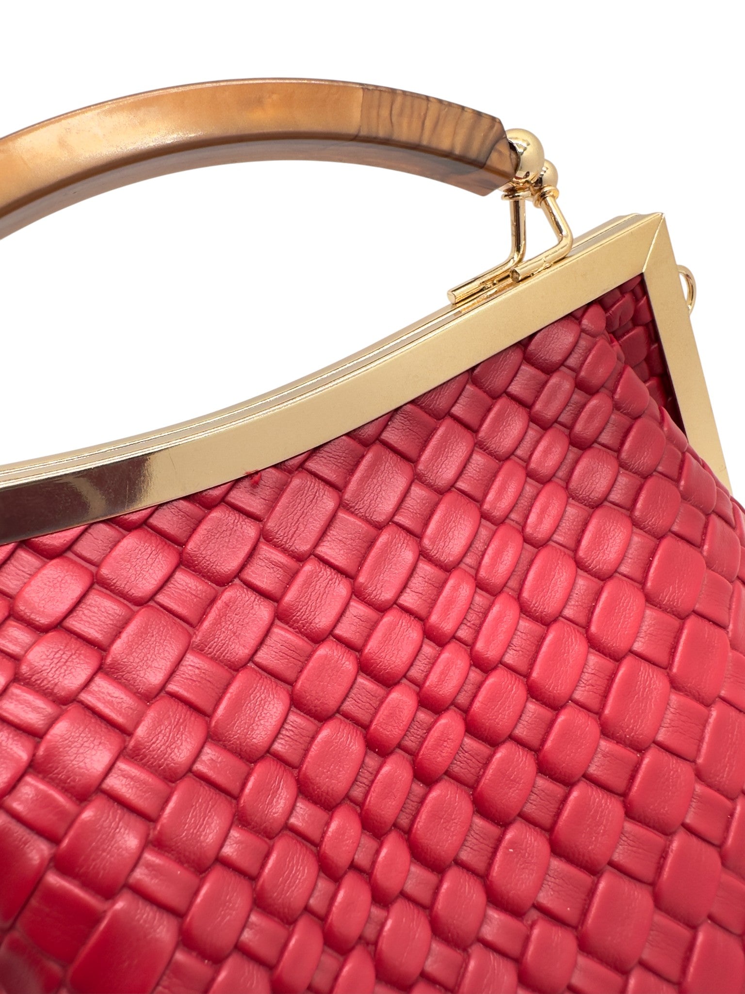 Bolso en cuero vegano de alta calidad importado Estructura rígida con asa superior y correa larga. Textura grabada tipo cocodrilo. Herrajes metálicos dorados.