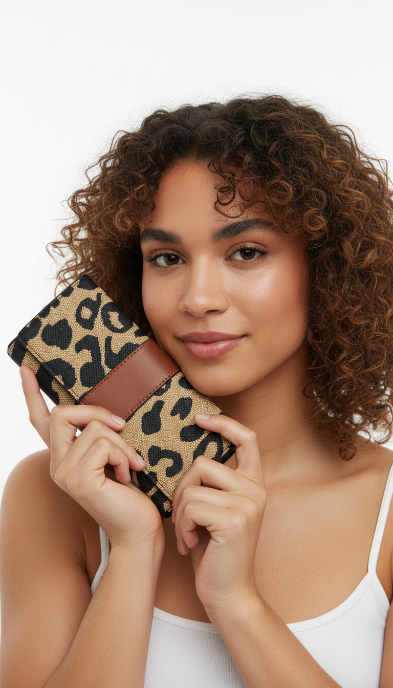 Billetera animal print pequeña. Audaz y moderna, combina moda y utilidad. Perfecta para mujeres de estilo atrevido.
